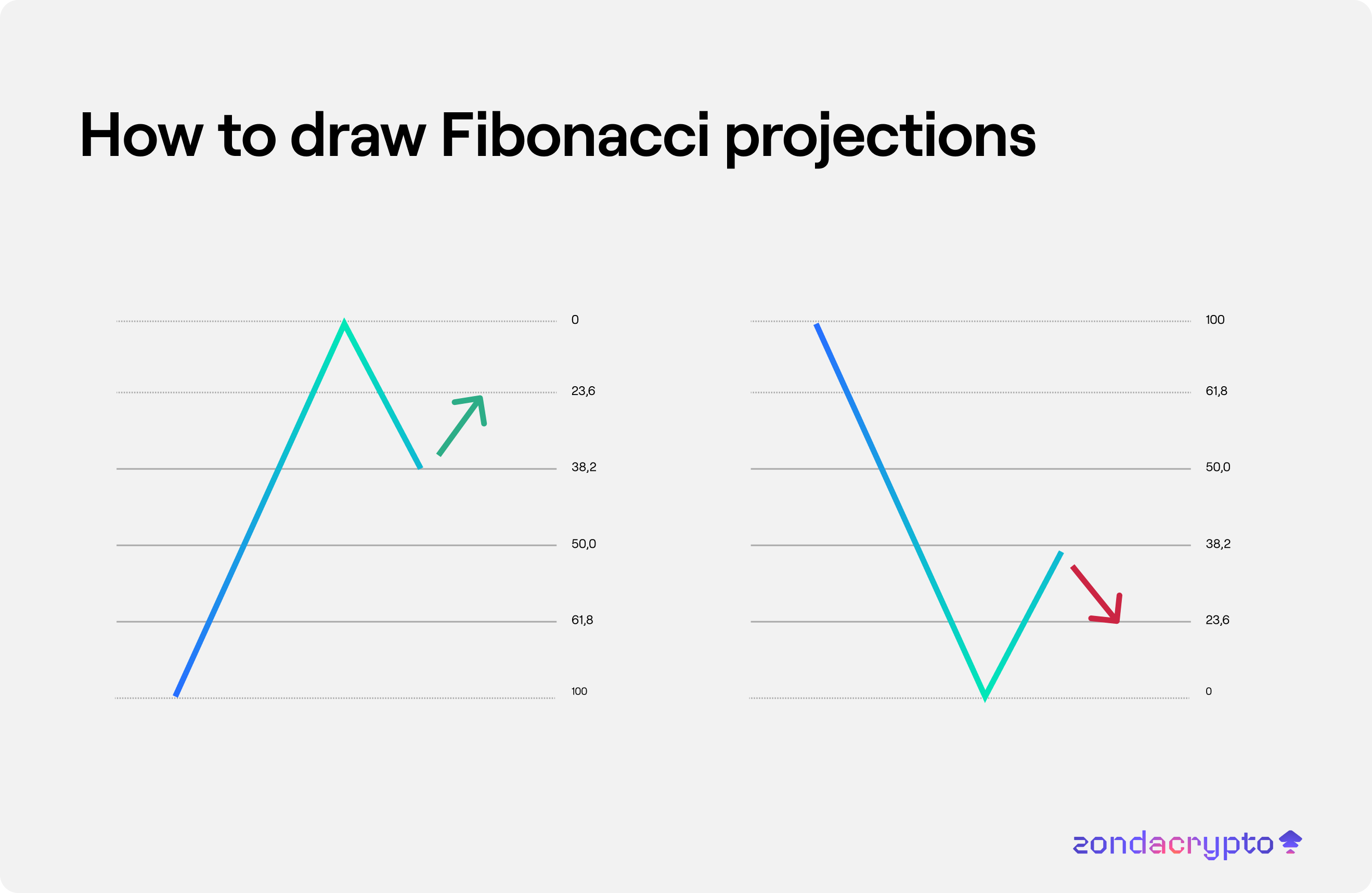 On a bitcoin (BTC) price chart, pick a low as point A, a peak as point B and another low as point C. After drawing the Fibonacci projection, you'll notice levels such as 161.8% and 261.8%, which can serve as potential price targets for future uptrend moves.