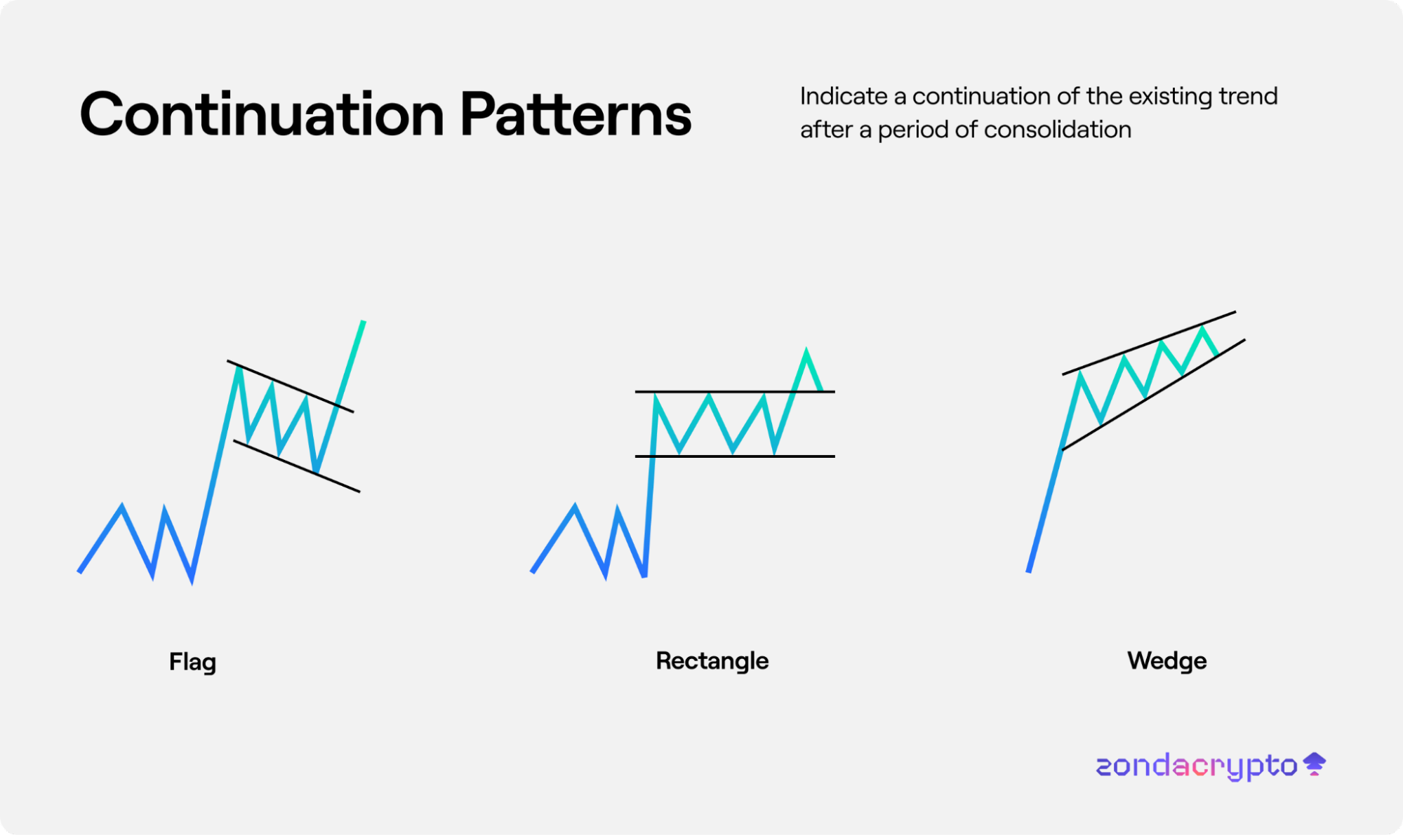 Continuation Patterns - Indicate a continuation of the existing trend after a period of consolidation