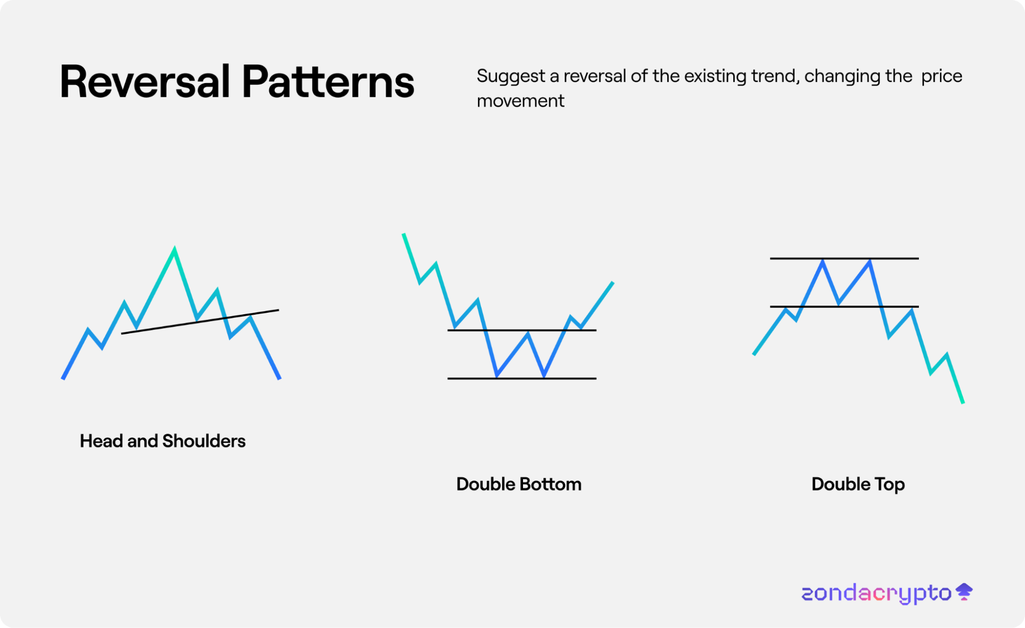 Reversal Patterns - Suggest a reversal of the existing trend, changing the price movement: