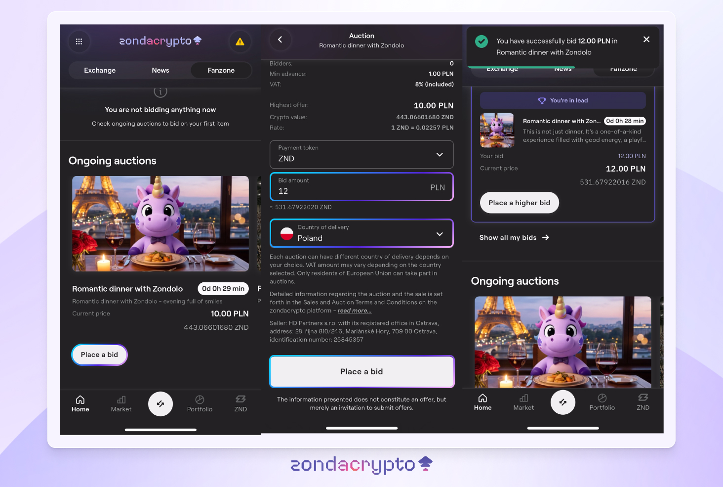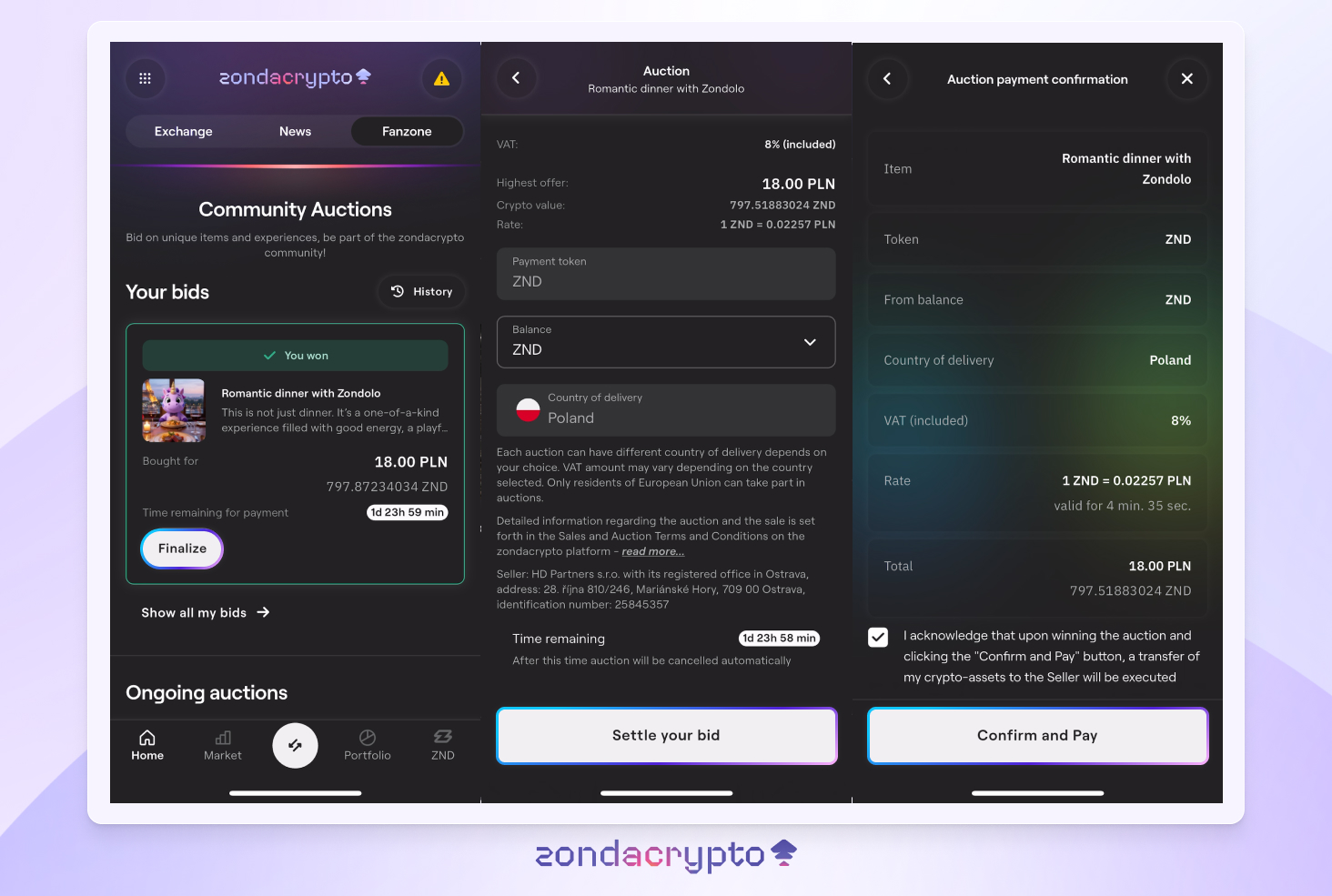 zondacrypto auctions step by step. Learn how to place bids, how payment in ZND works, and how to complete your purchase in the app.