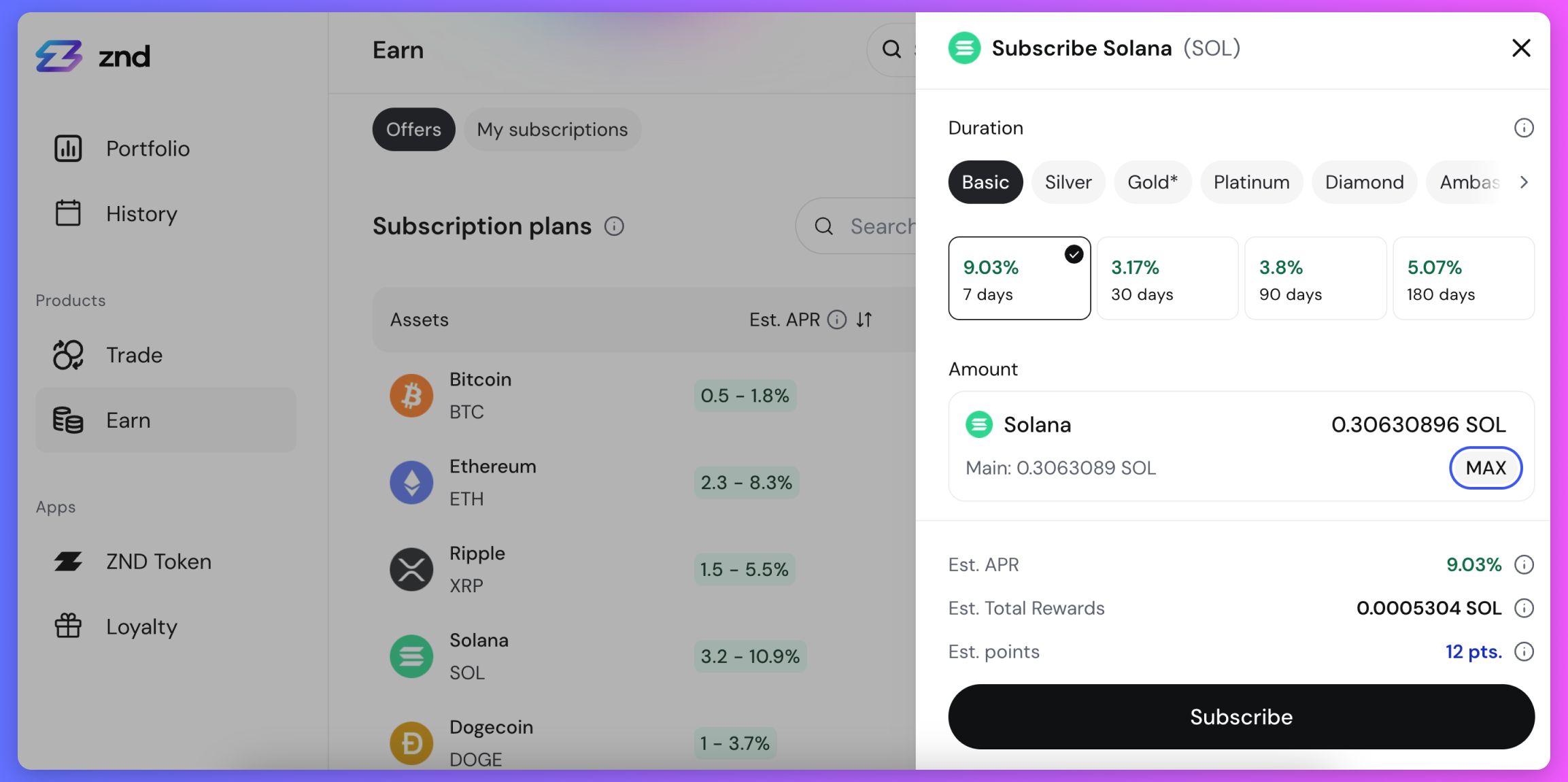 🔥 Take advantage of our limited-time offer on ZND Earn and lock your SOL in a 7-day plan with a record interest rate of 9.00% APR! Did you want to test out ZND Earn? Now it's the perfect time.
