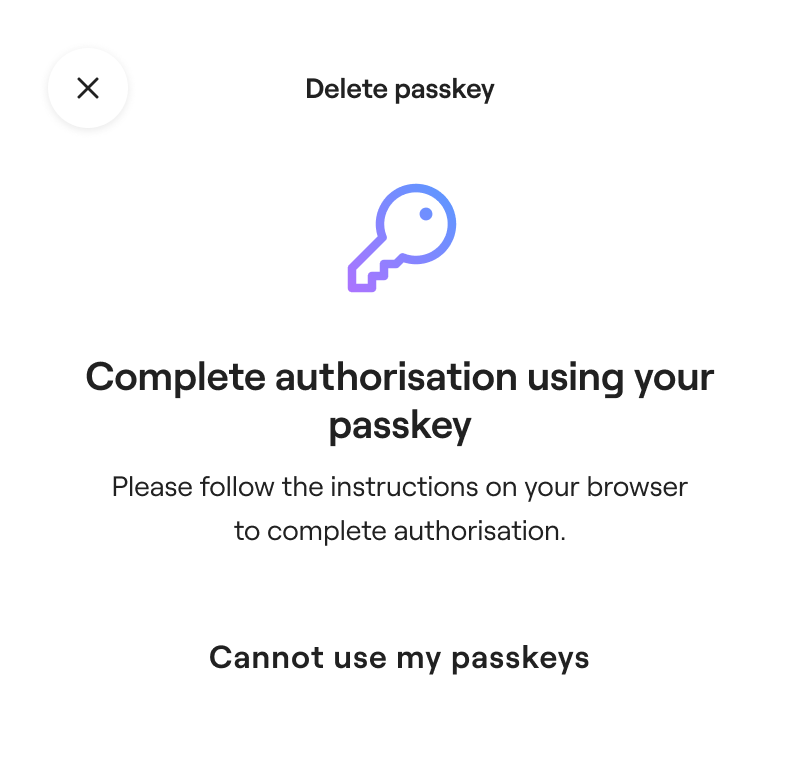If you can’t access any of your passkeys, you can always use a different option by clicking on the Cannot use my passkeys button.