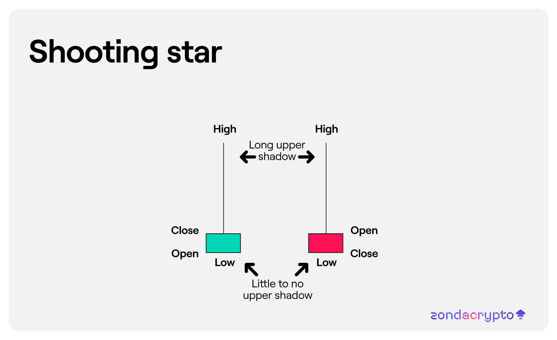 The falling star formation is the most popular and characteristic formation of a single candle illustrating the reversal of an uptrend (foreshadowing declines). The structure of this candle is identical to that of the hammer, except that it appears after the uptrend. A shooting star has a long upper shadow, a small body (red or green) and a small or completely absent lower shadow. The upper shadow, on the other hand, should be 2 to 3 times larger than the body. On the other hand, as it might seem, the lower shadow cannot be larger than the body (or cannot occupy more than 20% of the entire candle). This formation signals a decline after an uptrend.