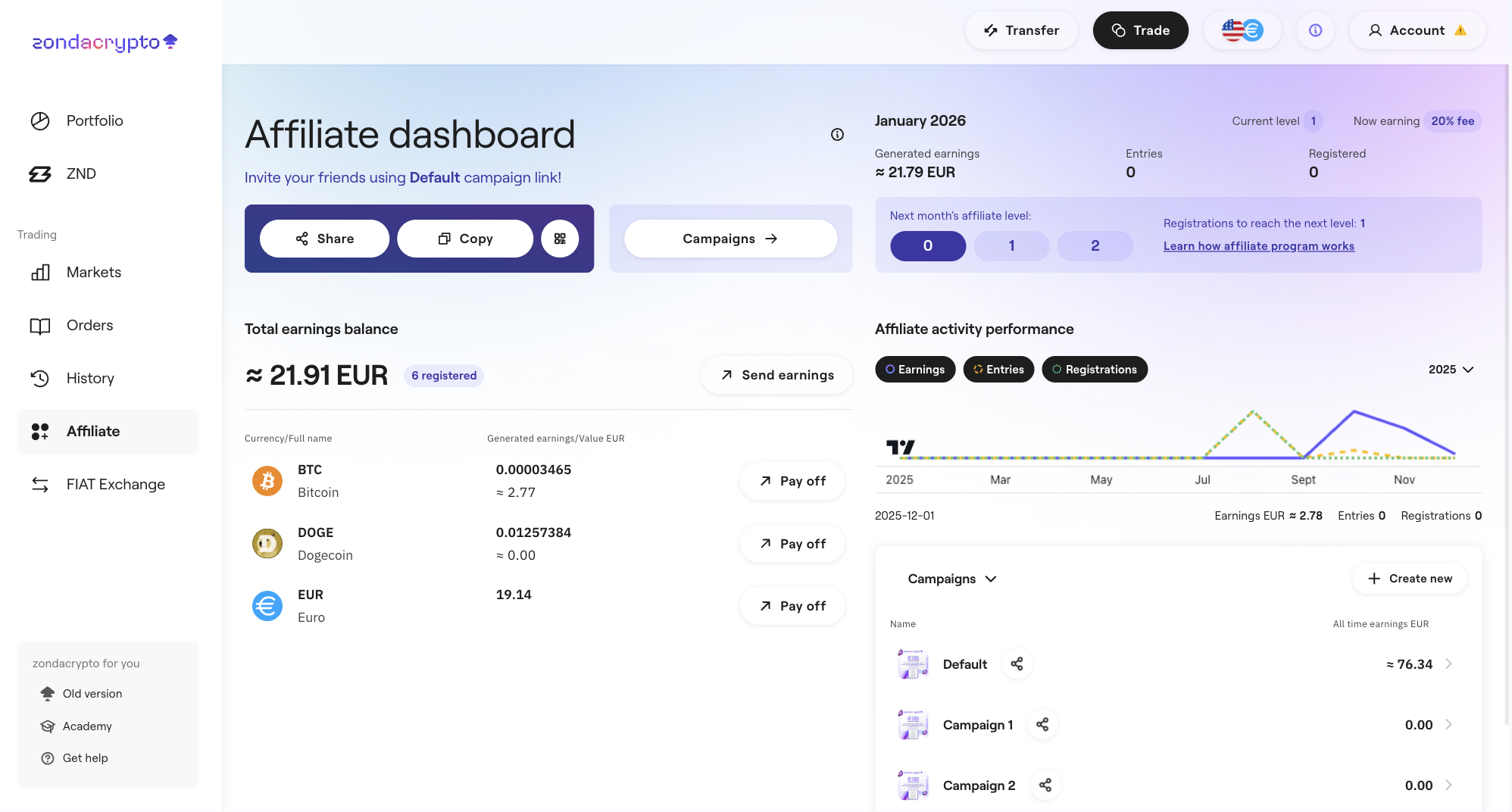 Pay off – easily transfer your earnings to your main zondacrypto portfolio balance.