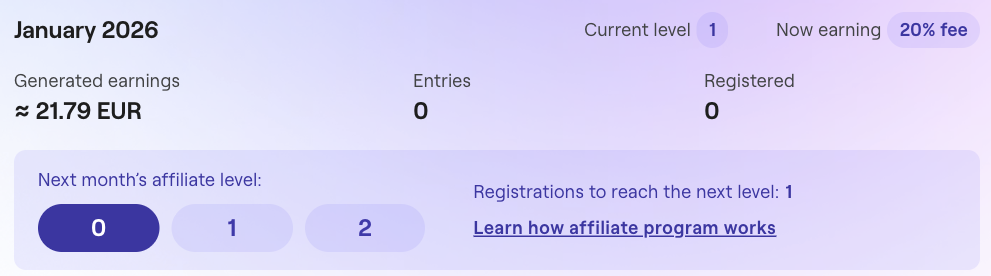 Required registrations – find out how many more new users must register using your link to reach a higher level.