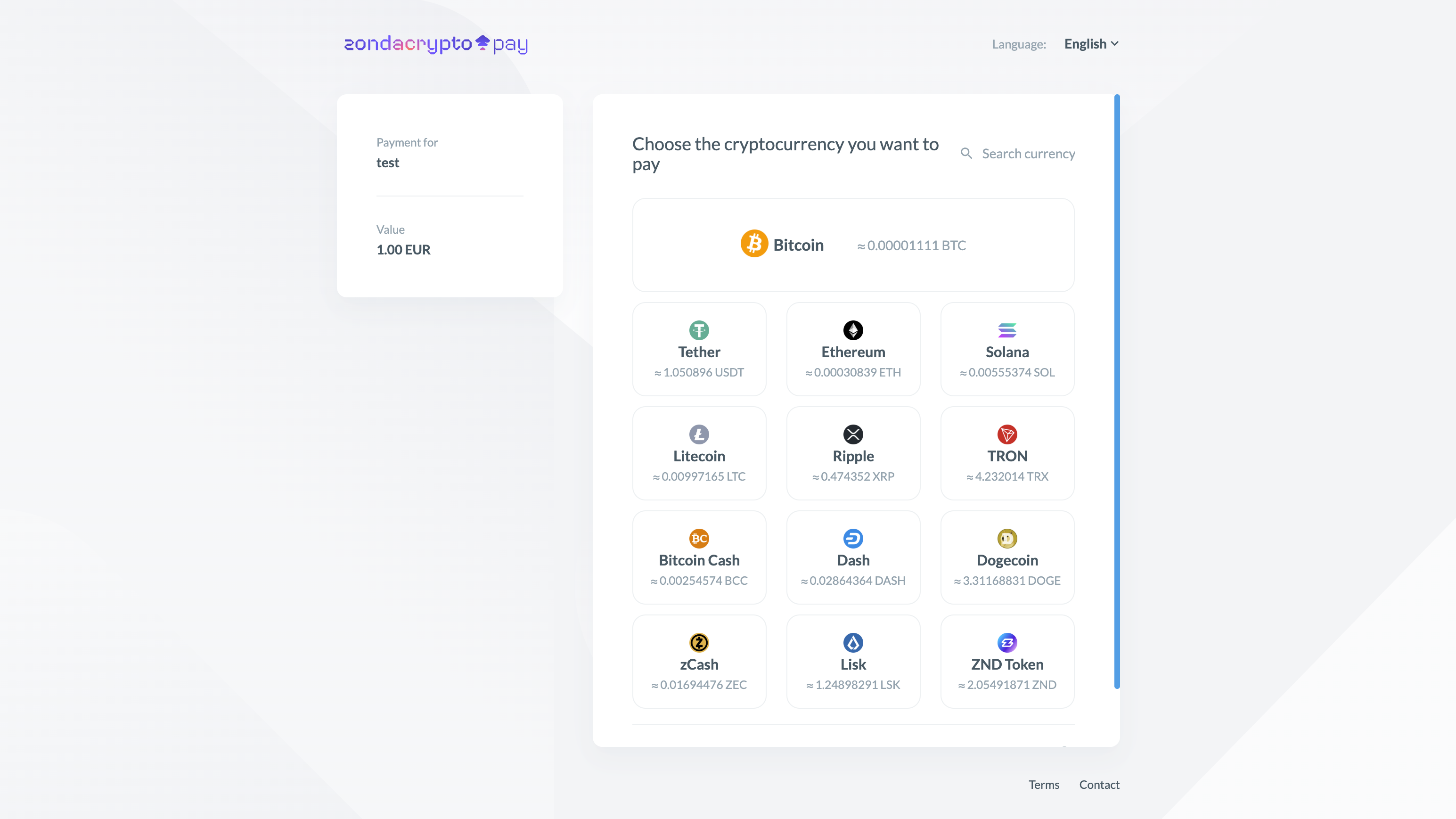 When you reach the payment gateway, choose the cryptocurrency you want to use to pay for your order.