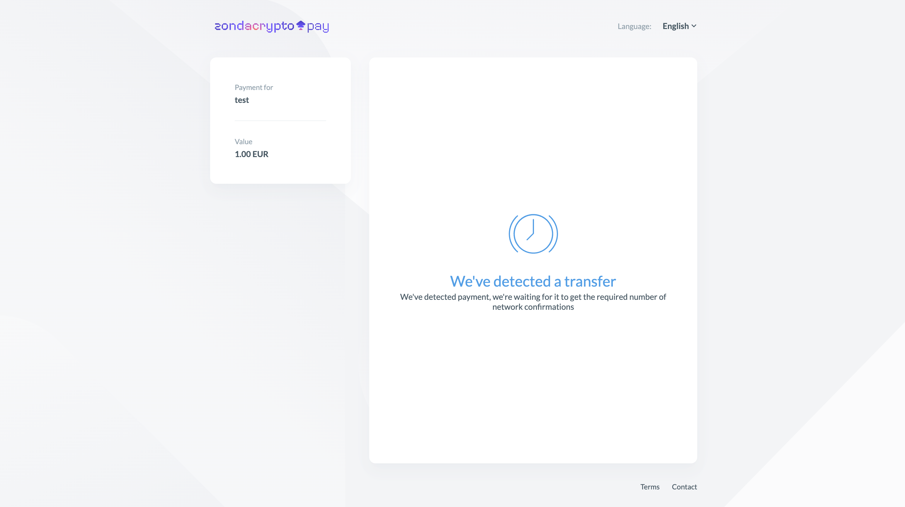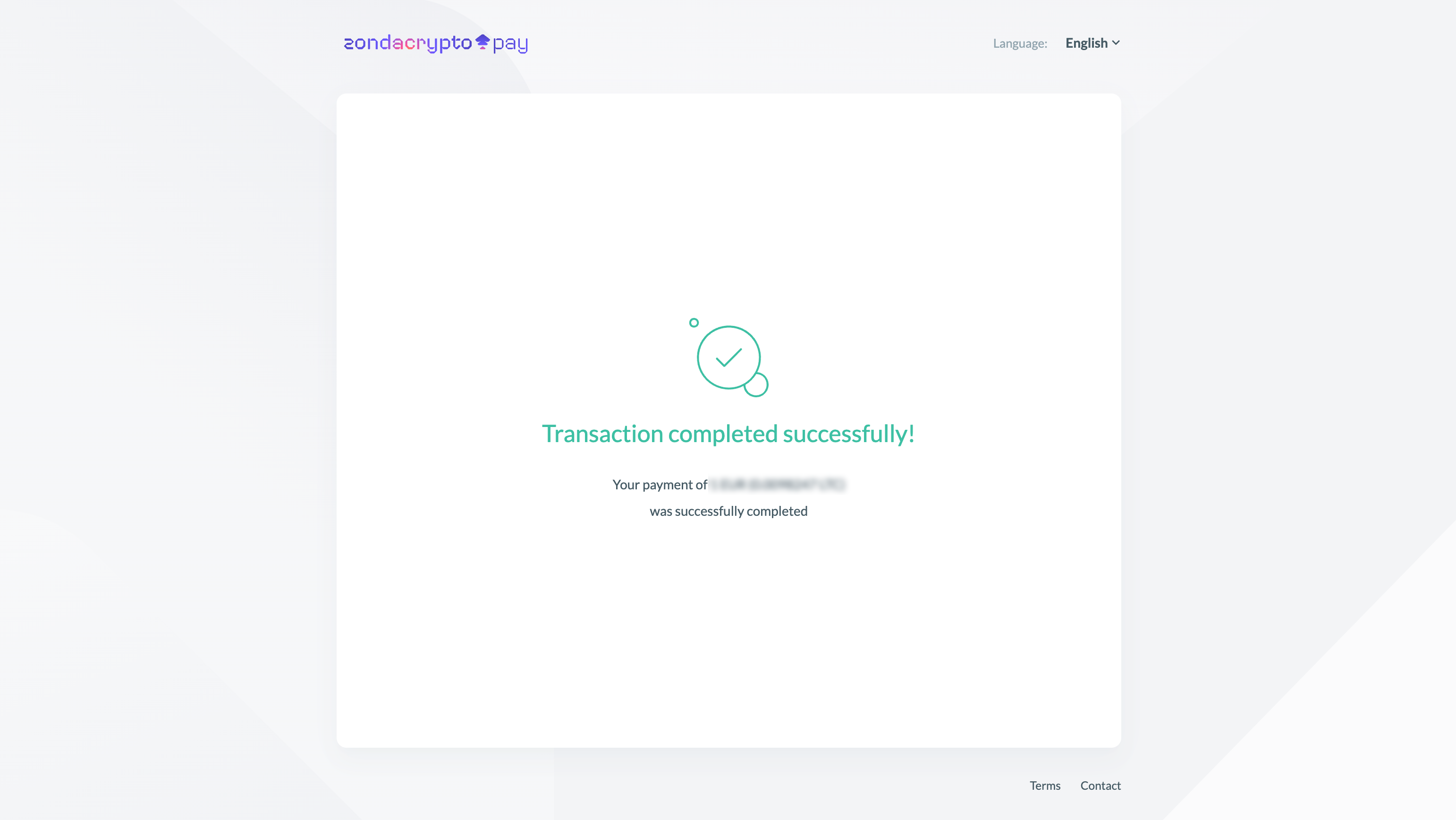 When your transfer gets the required number of confirmations from the network, the payment is complete and you will be redirected back to the merchant's site.