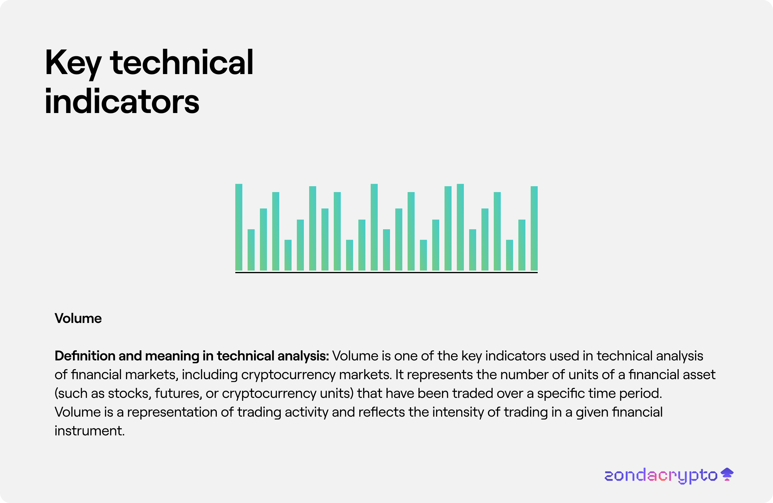 Volume is one of the key indicators used in technical analysis of financial markets, including cryptocurrency markets. It represents the number of units of a financial asset (such as stocks, futures, or cryptocurrency units) that have been traded over a specific time period. Volume is a representation of trading activity and reflects the intensity of trading in a given financial instrument.