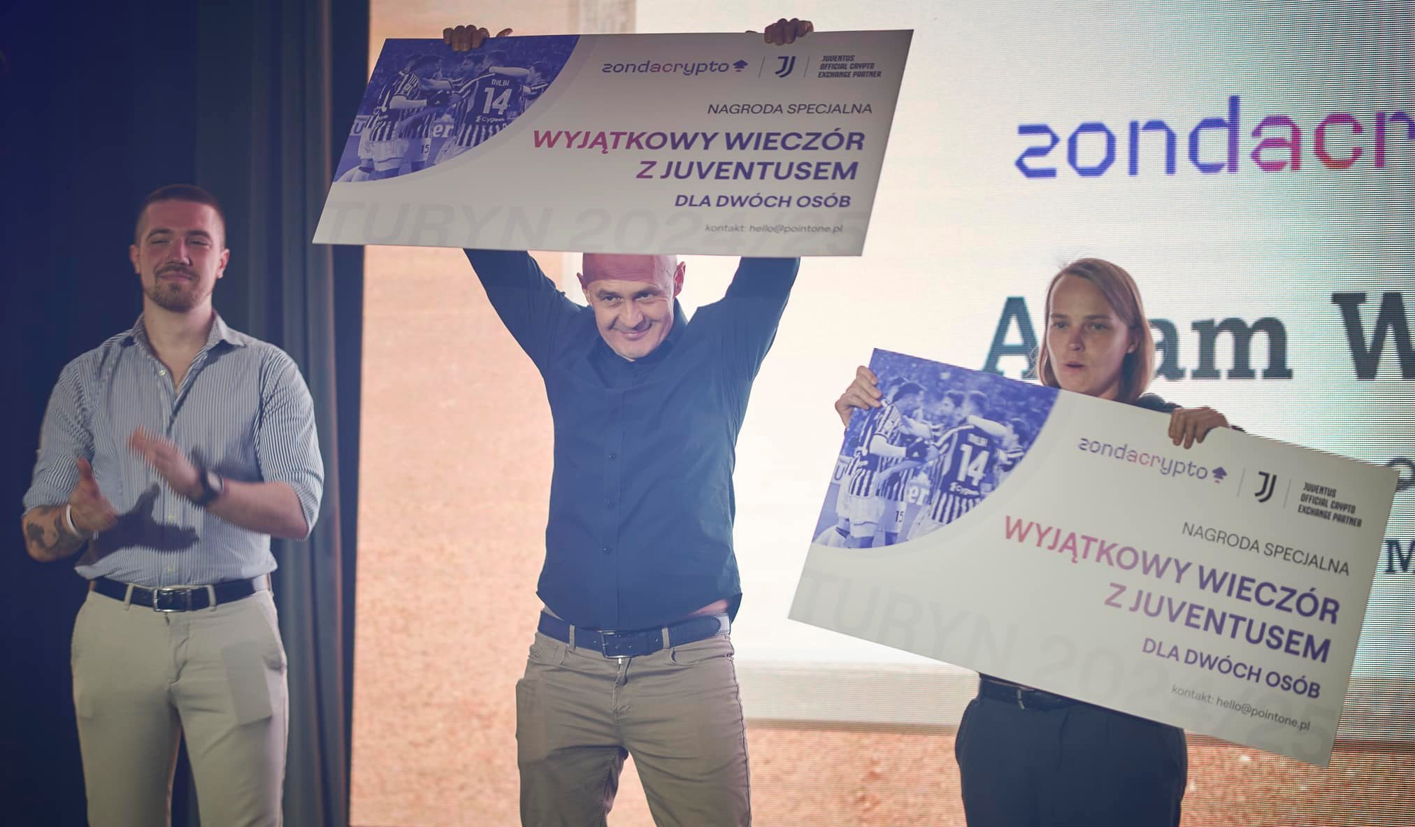 The SUP Challenge, which took place on Saturday off the Sopot pier, allowed attendees to compete for valuable prizes. The competition winners were awarded two double tickets to a Juventus FC match in Turin. The men's podium placements were decided by narrow margins, adding excitement to the event. Waldemar Heflich hosted Saturday's awards ceremony, and the prize donated by zondacrypto was presented by our Social Media Manager, Piotr Szopa.