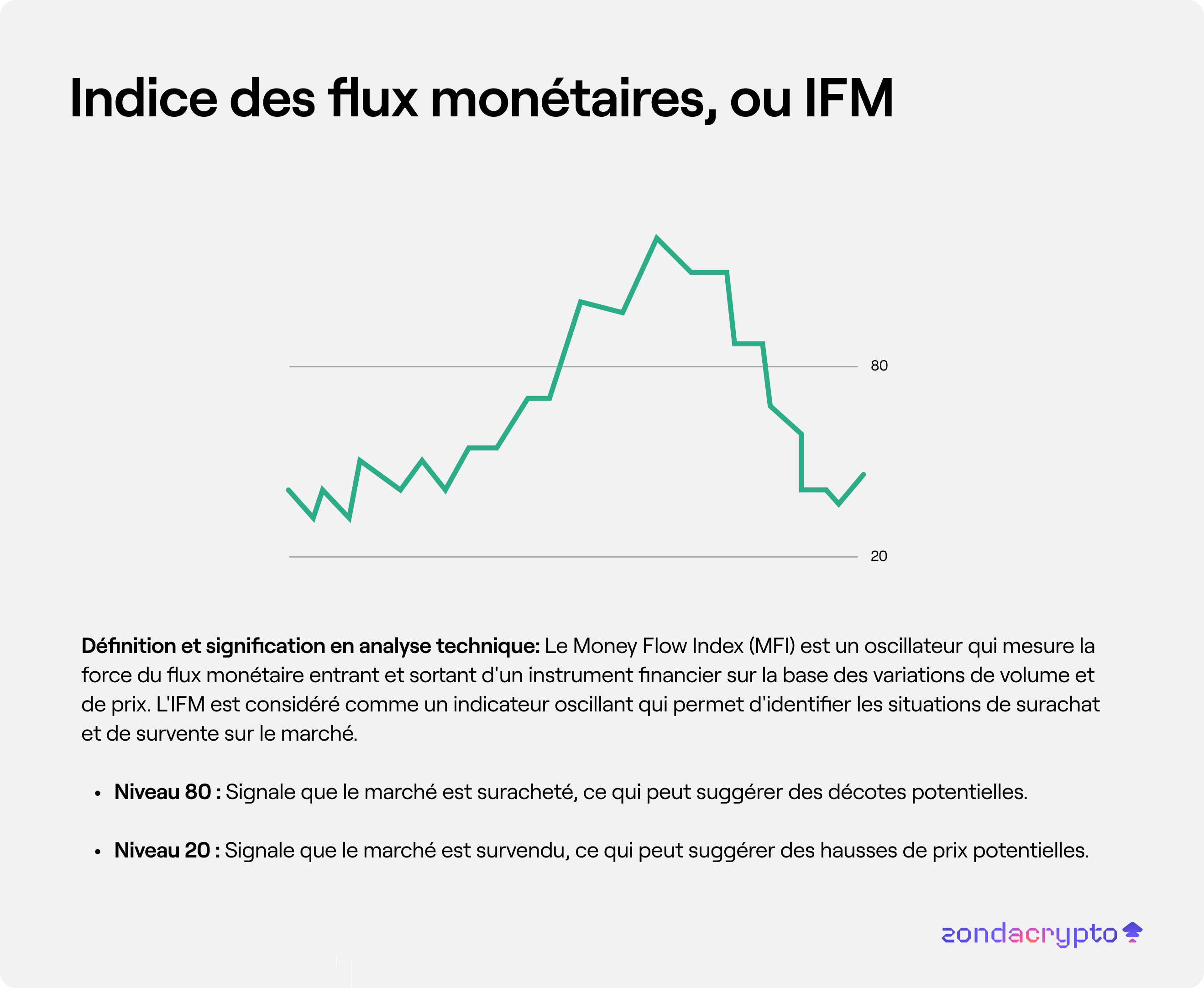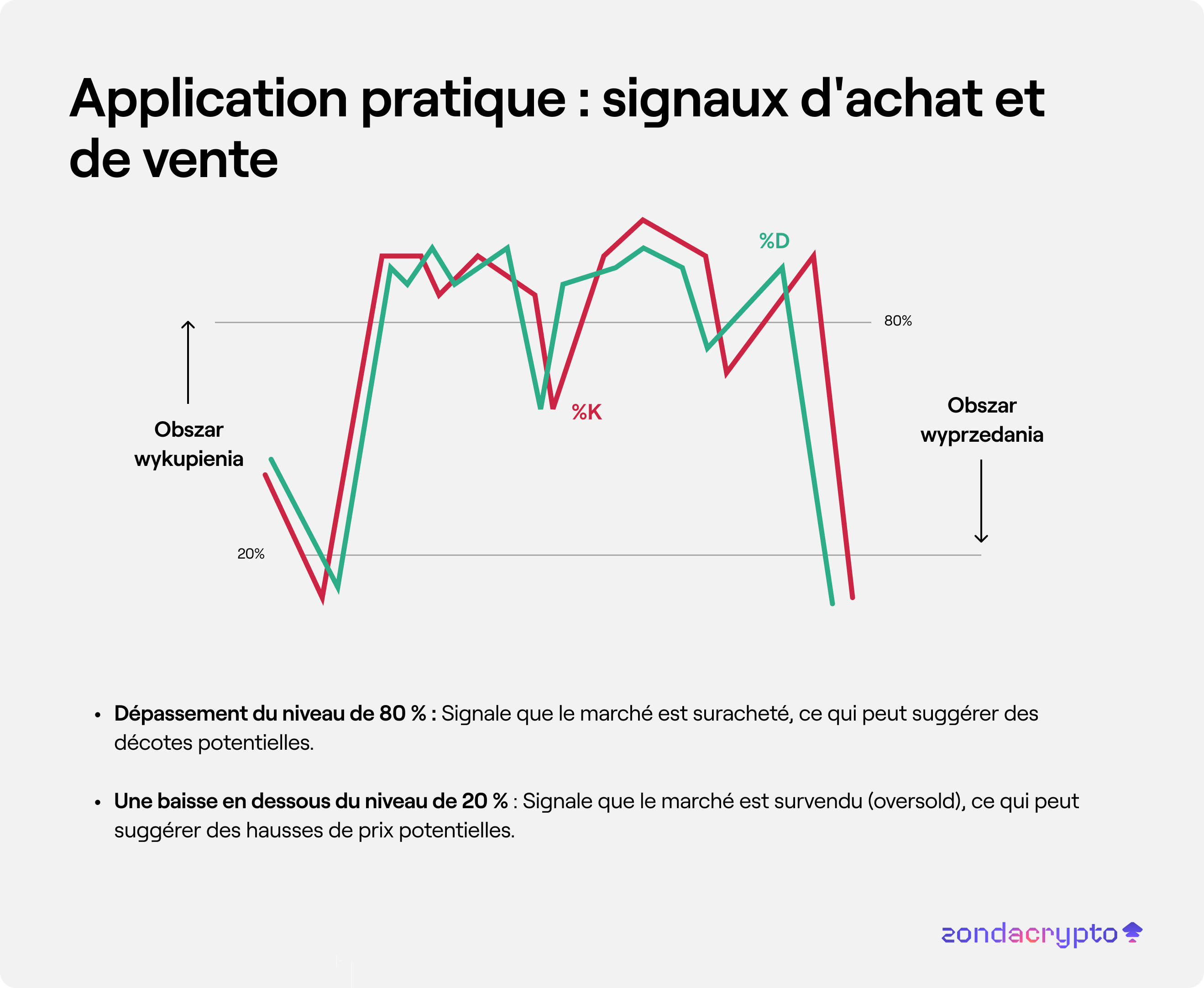 • Surachat et survente: Aide à identifier les périodes où le prix est trop élevé (suracheté) ou trop bas (survendu).