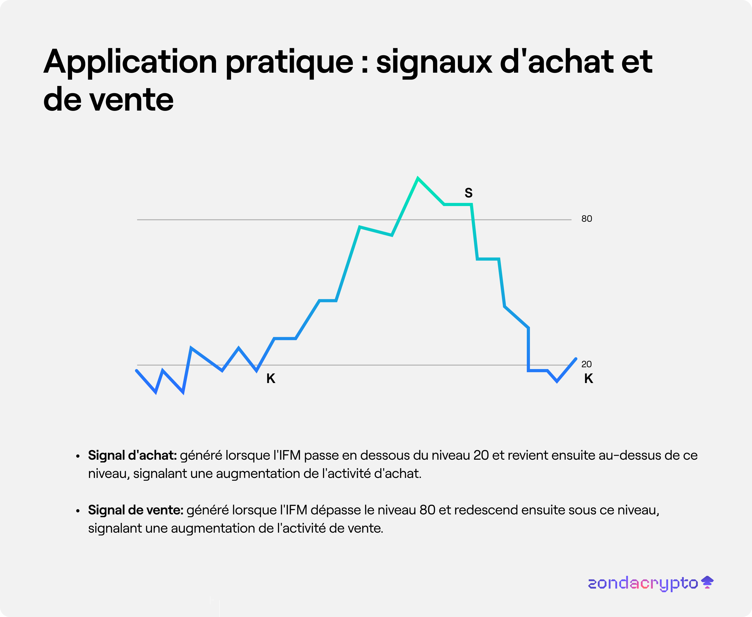 • Lorsque l'IFR tombe en dessous de 30 : cela peut signifier que le marché est survendu, ce qui suggère la possibilité d'une hausse des prix dans un avenir proche.
