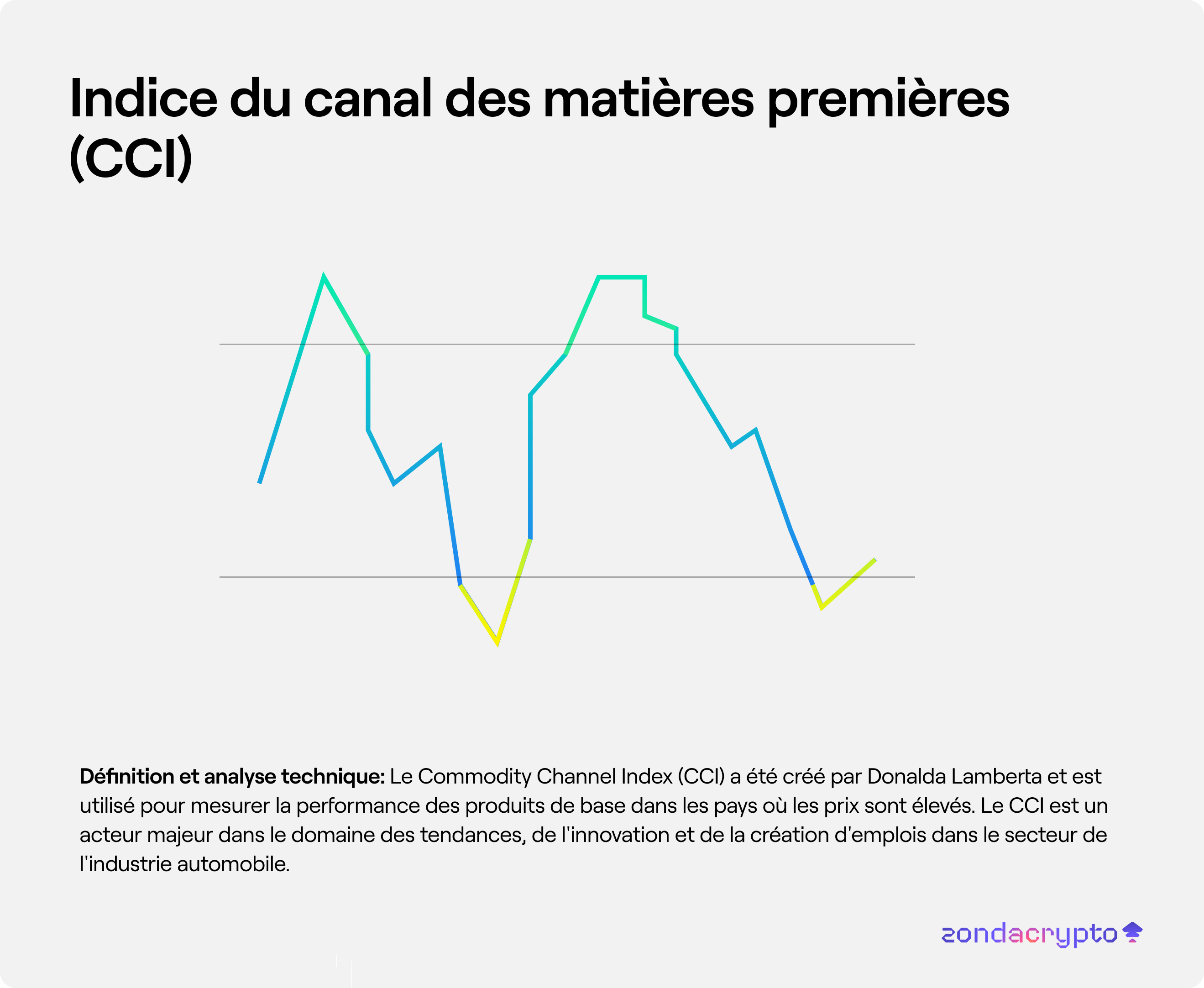 Le Commodity Channel Index (CCI) a été créé par Donalda Lamberta et est utilisé pour mesurer la performance des produits de base dans les pays où les prix sont élevés. Le CCI est un acteur majeur dans le domaine des tendances, de l'innovation et de la création d'emplois dans le secteur de l'industrie automobile.
