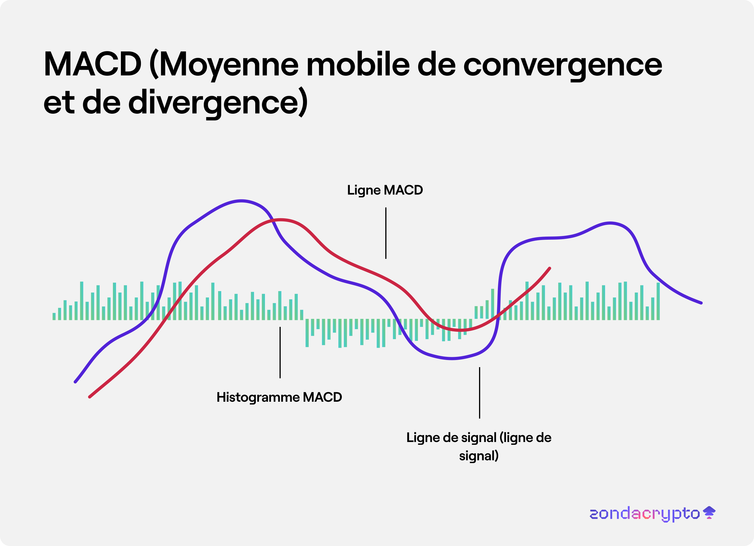 Indicateurs de tendance : Les indicateurs de tendance permettent d'identifier la direction et la force d'une tendance de marché. Les exemples incluent le MACD (Moving Average Convergence Divergence), l'ADX (Average Directional Index) ou les bandes de Bollinger.