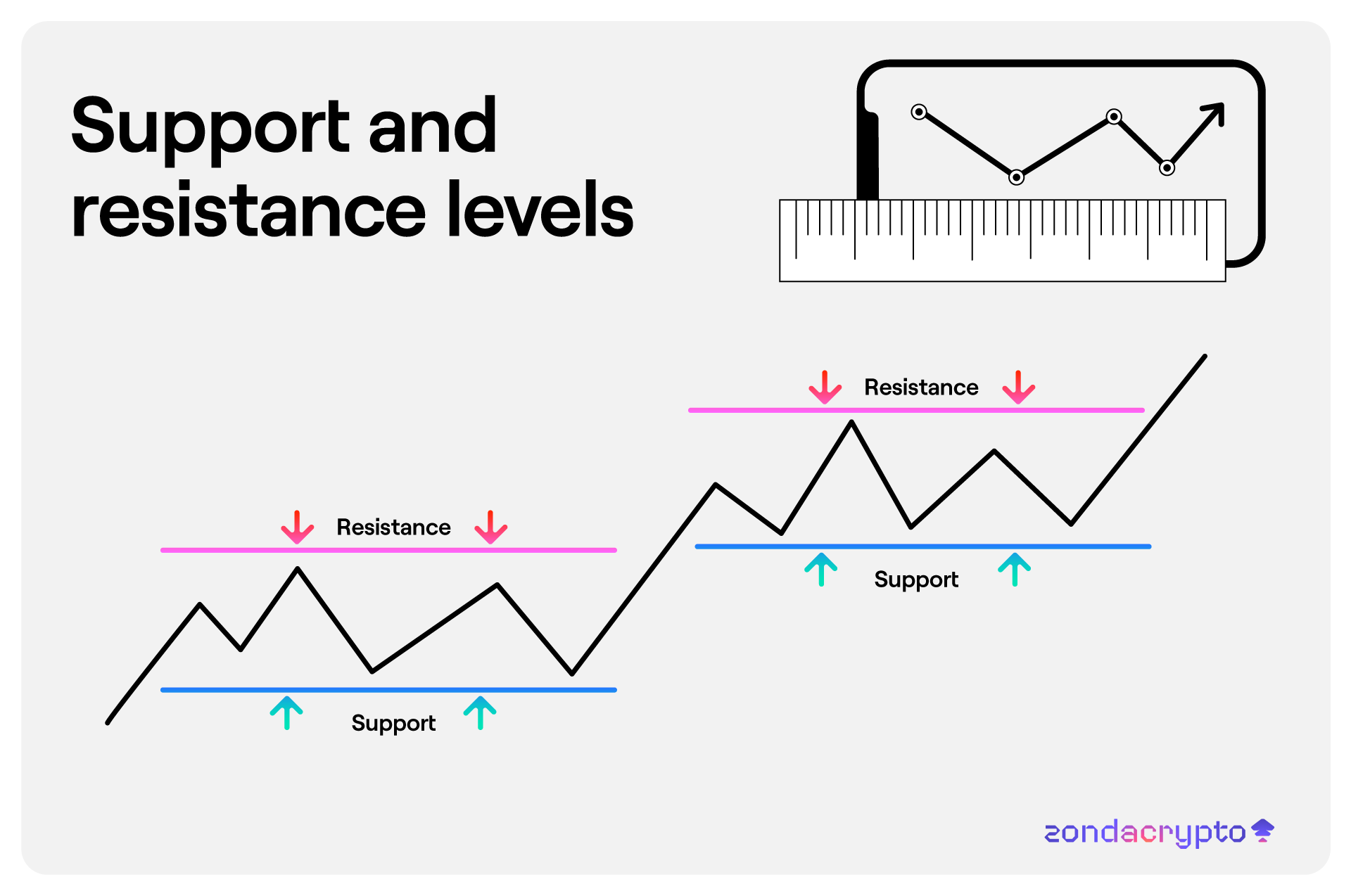 Le niveau de soutien se situe en dessous du prix actuel de l'actif et c'est généralement à ce niveau que le prix trouve un soutien. Cela signifie que le prix est plus susceptible de rebondir que de s'effondrer. Lorsque le prix d'un actif cryptographique baisse, la demande pour cette monnaie augmente, ce qui entraîne la formation d'une zone de soutien. Le niveau de soutien représente le « plancher » dans l'analogie d'une balle qui rebondit dans une pièce.