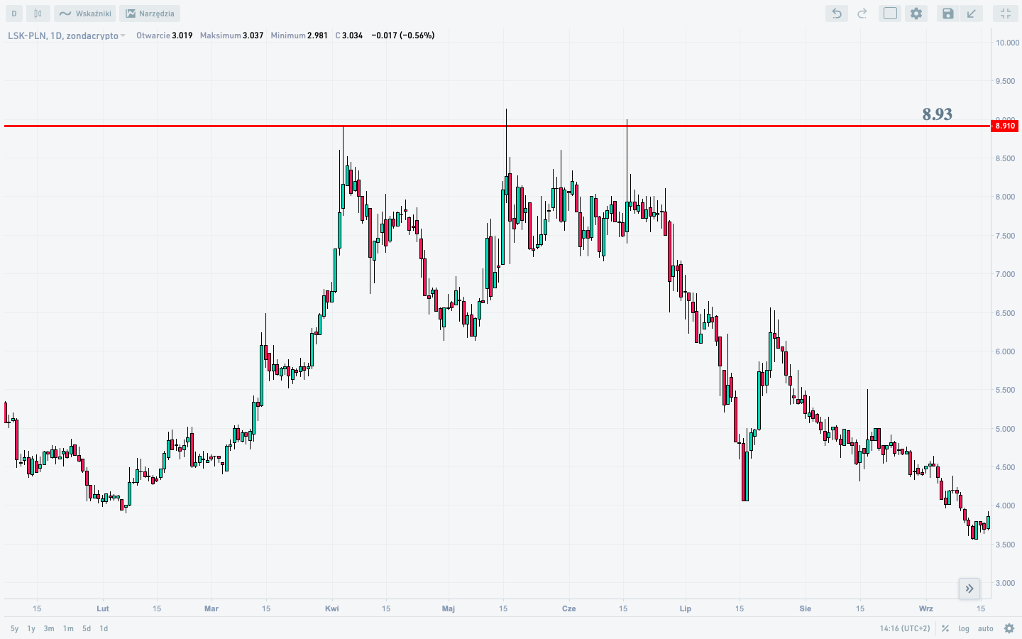 Le graphique ci-dessous est un exemple de la paire LSK-PLN, où le pic le plus élevé a fait office de résistance. Le marché a atteint ce niveau, mais aucune bougie ne s'en est approchée.
