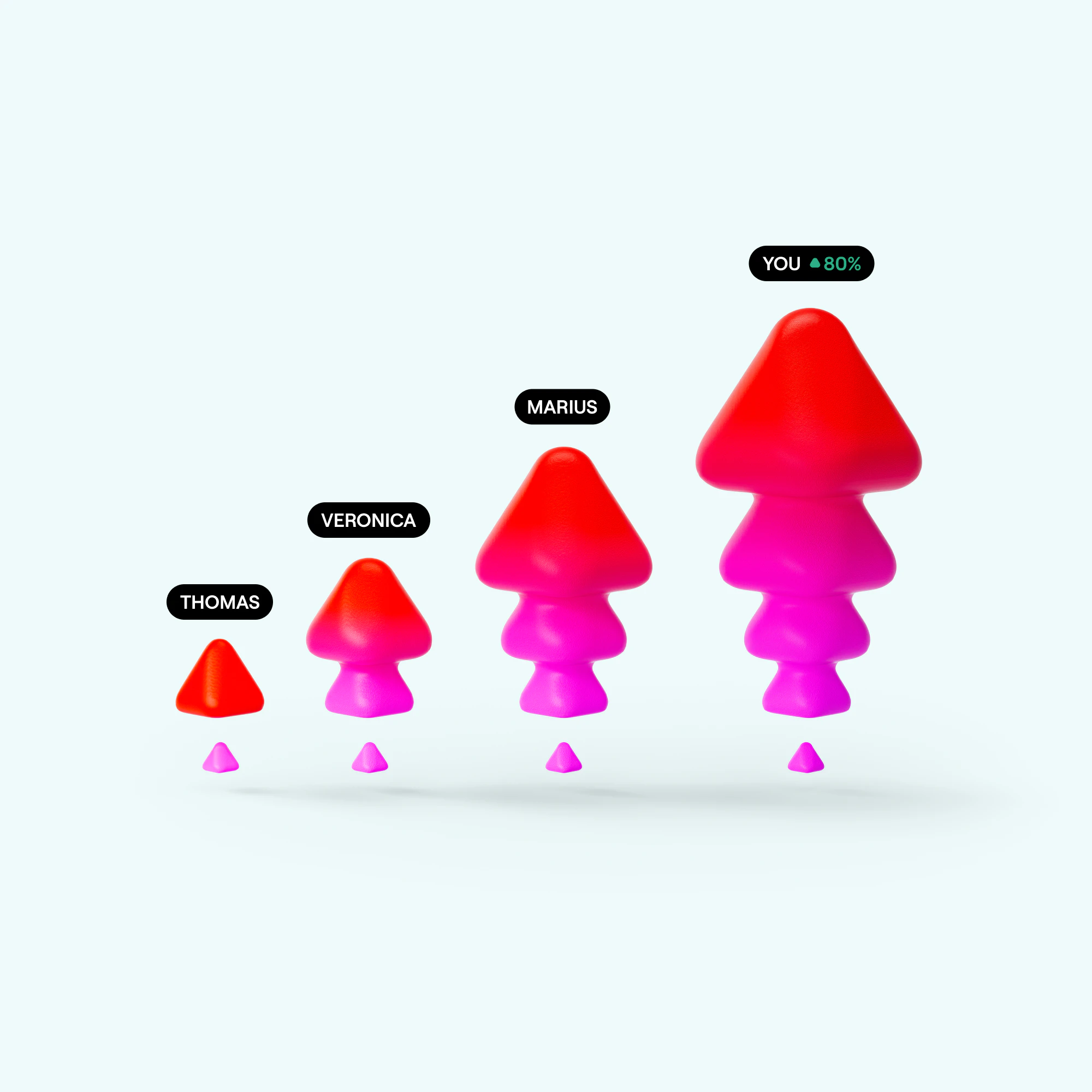3D graphic illustrating affiliate earnings growth, showing figures named Thomas, Veronica, Marius, and 'You' with '+80%' commission, symbolizing increased income. 3D graphic illustrating affiliate earnings growth, showing figures named Thomas, Veronica, Marius, and 'You' with '+80%' commission, symbolizing increased income.