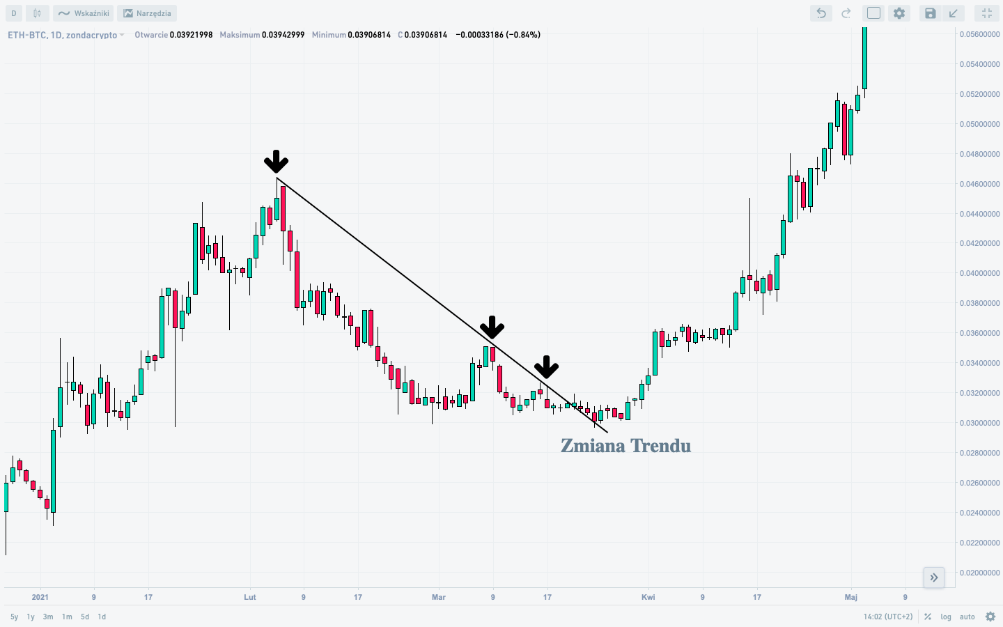 Il disegno di una linea di trend consente di individuare i segnali di prezzo. Se, in un trend rialzista, il prossimo massimo di prezzo rompe la linea di trend tracciata dai livelli dei massimi di prezzo precedenti, che scendono regolarmente sempre più in basso, tale situazione dovrebbe essere considerata un segnale di acquisto. Questi segnali indicano che è probabile che sul grafico inizi a comparire un'inversione di trend.