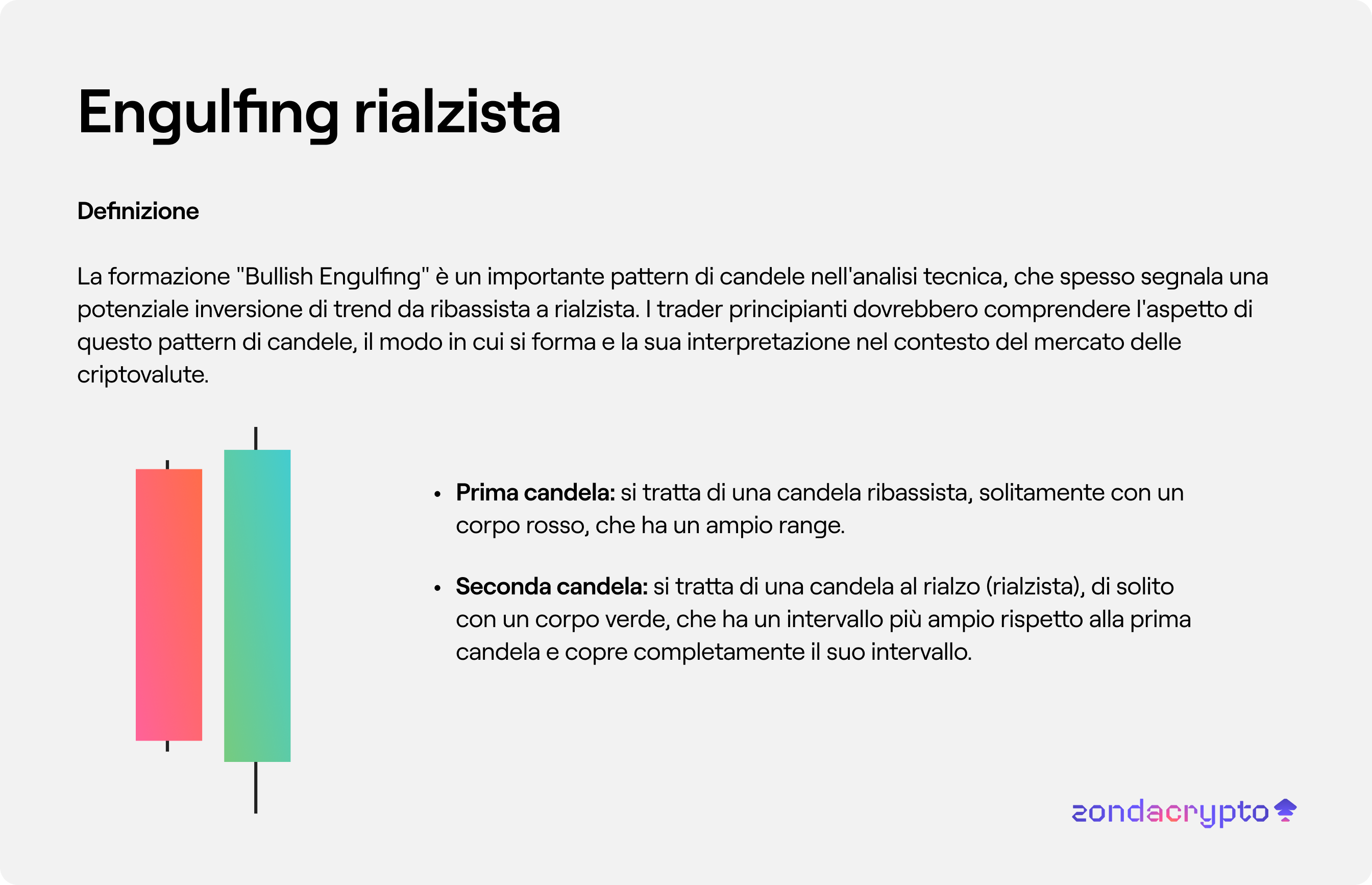 La formazione "Bullish Engulfing" viene interpretata come un forte segnale di rialzo, che suggerisce una potenziale inversione di trend da ribassista a rialzista. Gli elementi chiave per analizzare questa formazione sono: