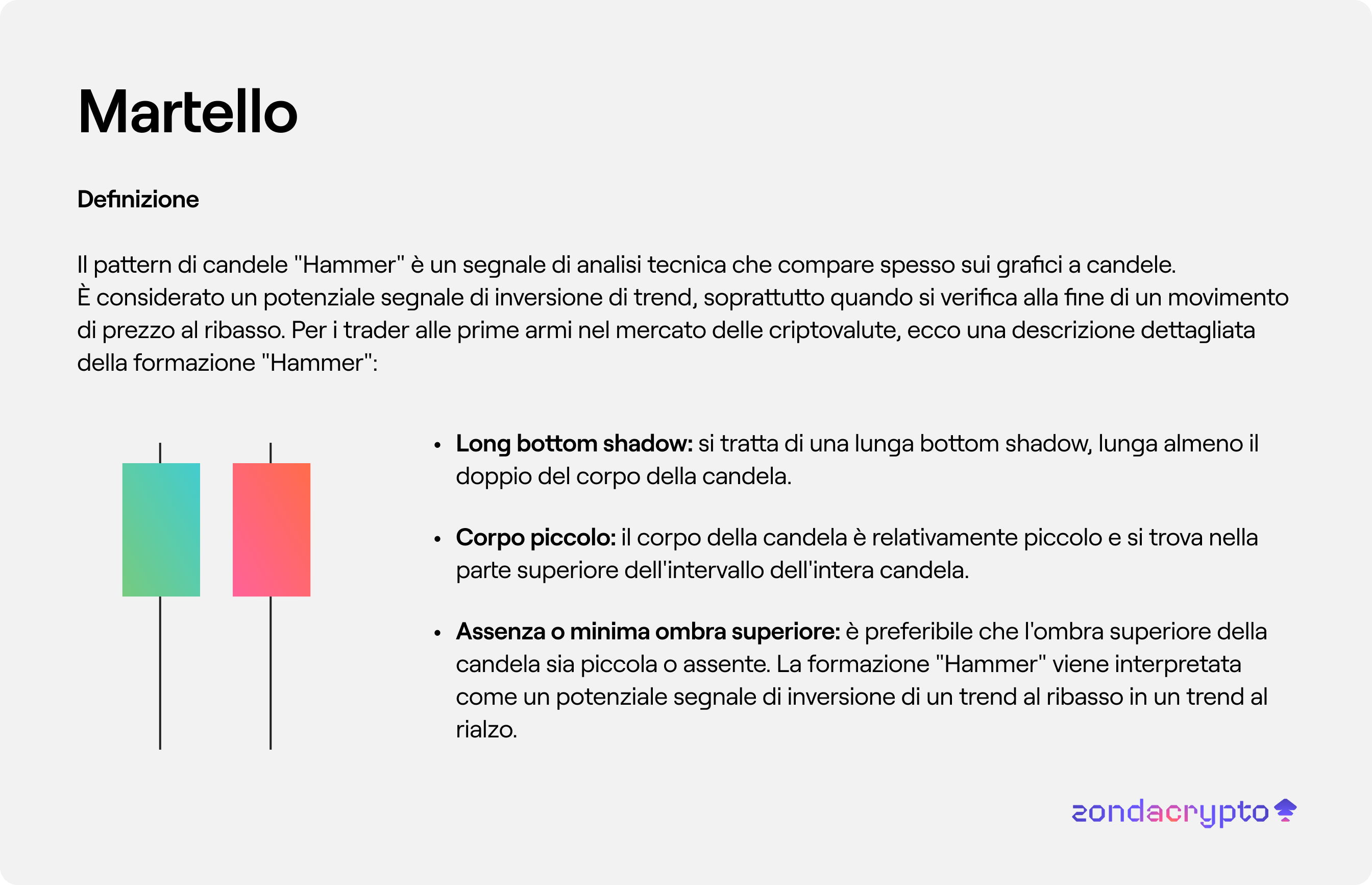 Chiusura: Il prezzo chiude vicino al prezzo di apertura, formando un piccolo corpo e una lunga ombra inferiore.
