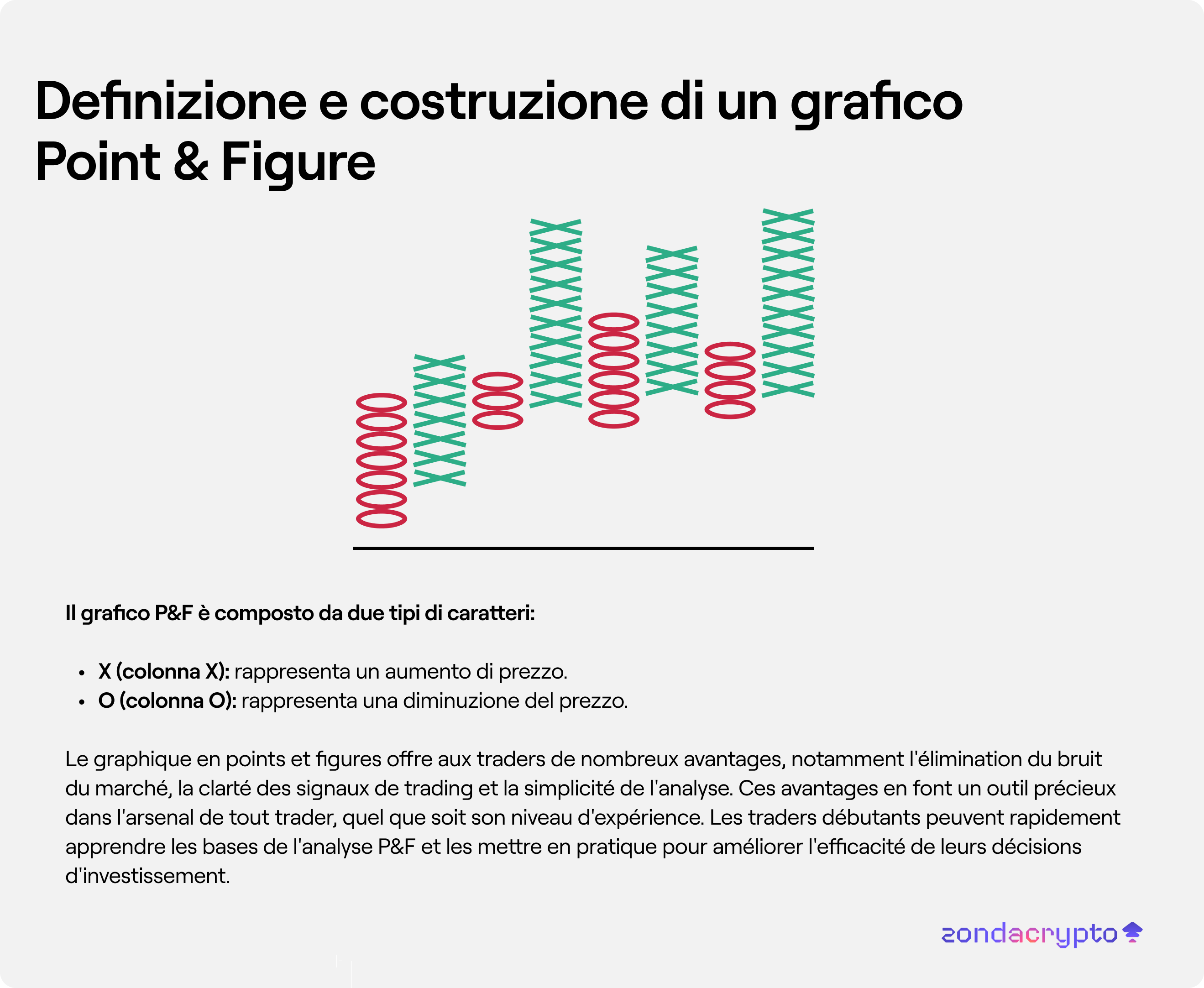Il grafico P&F è composto da due tipi di caratteri: