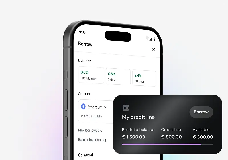 App mobile zondacrypto con funzionalità di linea di credito ZND