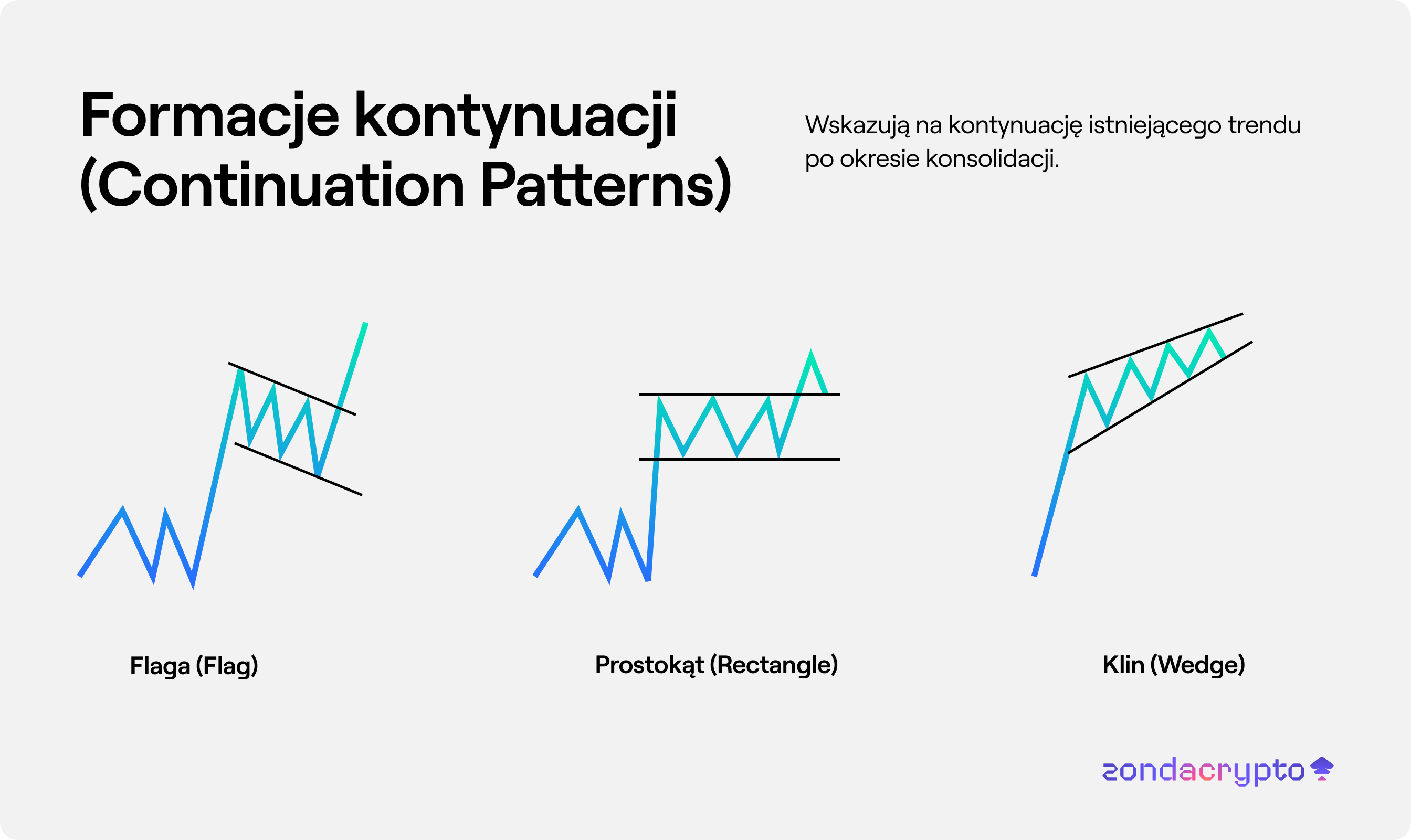 Formacje kontynuacji (Continuation Patterns) – Wskazują na kontynuację istniejącego trendu po okresie konsolidacji: