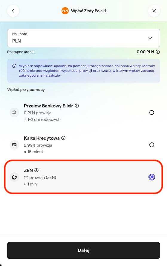 Pamiętaj – nie musisz posiadać środków na koncie ZEN, aby doładować konto na zondacrypto.